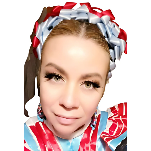 A Mexican folk dance instructor and dancer, originally from Guadalajara, Mexico, with over 25 years of experience. She has choreographed performances for large groups from various regions. She studied at the University of Guadalajara. She was a dance instructor for the SEP (Ministry of Public Education) and the DIF (National System for Integral Family Development) in Mexico. She performed professionally for the Casa de la Cultura (House of Culture) in Mexico.